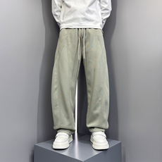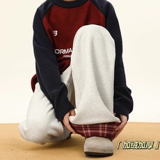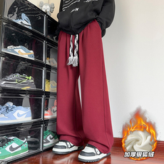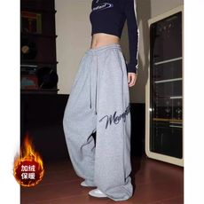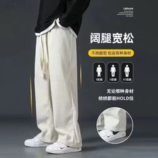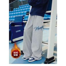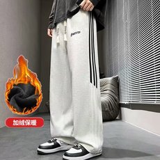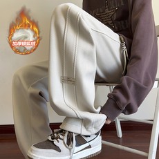 190加绒加厚长裤子男冬季宽松休闲卫裤美式休闲运动微喇垂感长裤