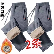 老爷车羊驼绒秋冬纯棉运动裤男爸爸休闲裤长裤子宽松直筒加绒加厚