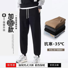 加绒加厚一体绒男式休闲卫裤蓄热保暖长裤秋冬新款束脚裤子运动潮