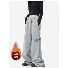 美式街头嘻哈hiphop卫裤男女款加绒加厚宽松直筒休闲阔腿运动长裤