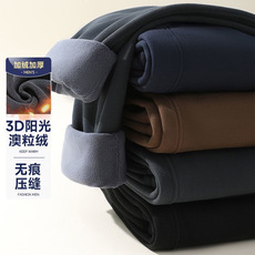 新款加绒裤子男款冬季加厚运动裤时尚休闲裤男士弹力保暖直筒长裤