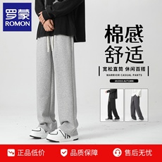 罗蒙裤子男生秋冬季灰色卫裤加绒加厚男士运动阔腿裤宽松直筒长裤