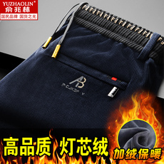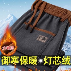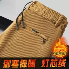 秋冬加绒加厚灯芯绒男裤松紧腰运动卫裤弹力爸爸时尚中年直筒长裤
