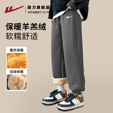 回力冬季加厚裤子男款宽松运动束脚卫裤男生休闲裤加绒保暖长裤H