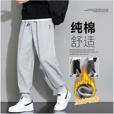 大码裤子男士秋冬季束脚运动纯棉卫裤灰色青少年加绒加厚休闲长裤