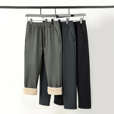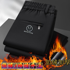 加绒加厚秋冬季中年男士修身保暖休闲裤潮流纯色御寒运动长裤男士