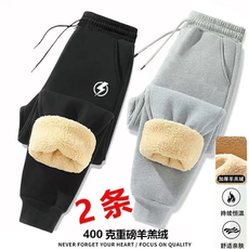 羊羔绒裤子男士秋冬季加绒加厚直筒休闲卫裤潮流百搭保暖运动长裤