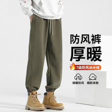 欧洲站加绒加厚防风裤男款秋冬休闲长裤运动裤保暖束脚卫裤男裤子