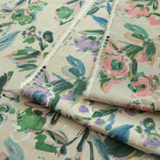 日本进口hokkoh棉麻面料印花手工舒适简约连衣裙服装布料花影漫染