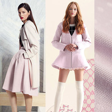 意产进口C家进口新款玫粉 白色粗花呢粗纺小香风外套专用服装面料