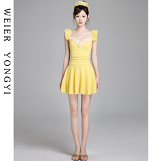 沫初见新款性感裙式连体泳衣少女保守小胸聚拢遮肚显瘦泡温泉泳装