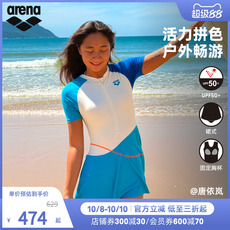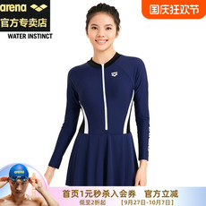 arena阿瑞娜女士长袖连体裙式游泳衣防晒遮肚显瘦抗氯温泉泳装