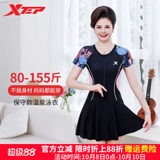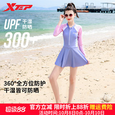 特步儿童泳衣女童2025新款连体裙式中大童泡温泉女孩保守防晒泳装