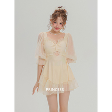 泳衣女纯欲风甜美小个子连体吊带裙式遮肚少女温泉度假聚拢泳装女