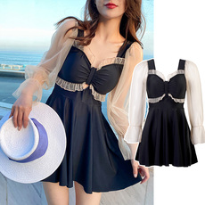 BE范德安连体裙式泳衣女时尚MIX系列长袖防晒遮肚显瘦泡温泉度假