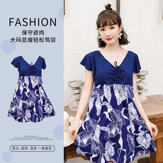 蔓芭莎加肥加大温泉泳衣保守遮肚欧美裙式妈妈连体大码女胖mm泳装