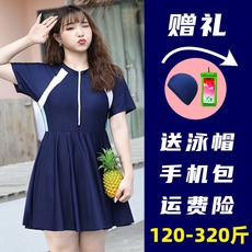 泳衣女大码胖mm200斤显瘦遮肚保守微胖女孩连体裙式长袖防晒温泉