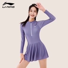 【季末清仓】李宁游泳衣女士夏长袖连体裙式泳衣保守显瘦遮肚温泉