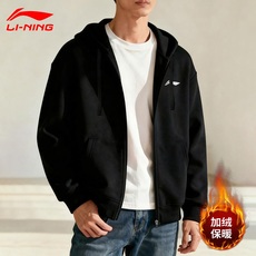 李宁男士开衫卫衣秋冬季加厚保暖连帽长袖上衣男款休闲加绒外套