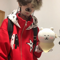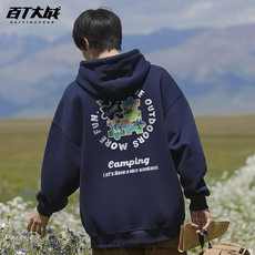 美式时尚潮牌连帽卫衣男款秋冬装宽松印花百搭印花加绒休闲外套潮