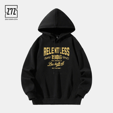 美式连帽卫衣男款2025新款春秋款高街宽松重磅青少年加绒外套潮牌