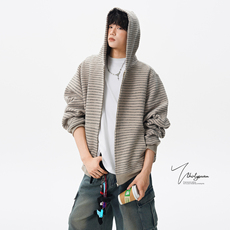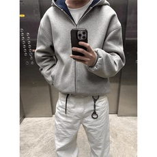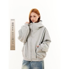 双拉链开衫卫衣男款春秋高级感廓形美式高街重磅硬挺潮牌连帽外套
