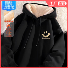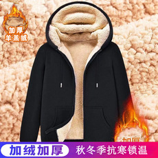 连帽卫衣男款外套羊羔绒超厚加绒保暖黑色内搭冬季百搭男士长袖装