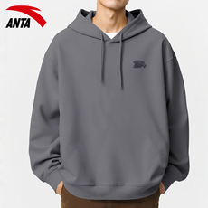 安踏连帽卫衣男款灰色上衣2025秋季新款套头衫宽松秋冬款加绒外套
