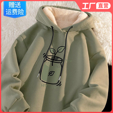 连帽卫衣男款外套羊羔绒超厚加绒保暖黑色打底衫冬季百搭男士长袖