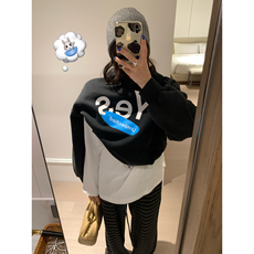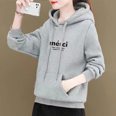欧货时尚双面德绒百搭印花套头长袖上衣女秋冬新款洋气连帽卫衣女