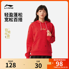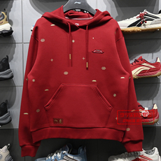 李宁日进斗金连帽卫衣女士蛇年红色新年秋季宽松运动上衣套头衫