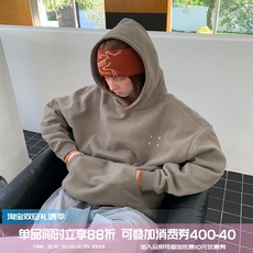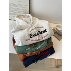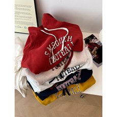 ulzzang小众慵懒风字母印花套头连帽卫衣女2025秋冬加绒加厚帽衫