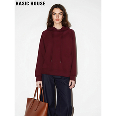 Basic House/百家好红色连帽卫衣女2025秋冬新款慵懒宽松套头上衣