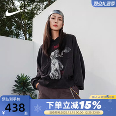 NIKE耐克女卫衣冬新款复古做旧天使女神宽松套头连帽衫IO0489-010