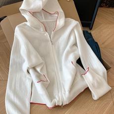 8066休闲设计感简约连帽长袖针织衫女秋季显瘦毛衣开衫外套宽松