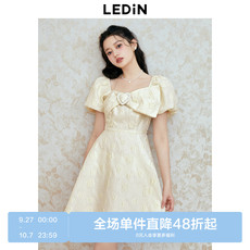 秋水伊人赫本风A字收腰简约连衣裙2024年夏新款女蝴蝶结百搭裙子