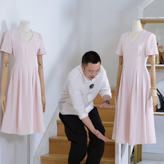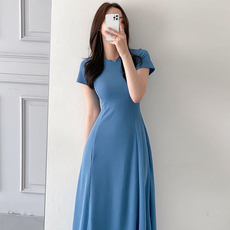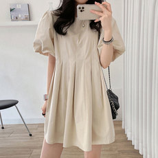 2025夏新品圆领收腰显瘦蓬蓬A字通勤短袖西装裙女装连衣裙