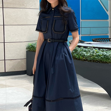 Yifini/易菲中长款中袖翻领衬衫连衣裙女夏装新款收腰A字裙