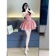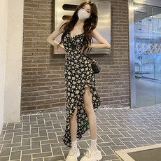 网红吊带裙女2025夏季新款纯欲气质显瘦收腰不规则性感碎花连衣裙