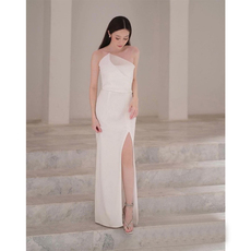 【5折】苎麻白色连衣裙新款夏季长裙收腰显瘦圆领小礼服裙子女