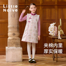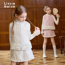 LittleNaive女童千金风夹棉马甲半裙套装公主纱裙连衣裙打底衫