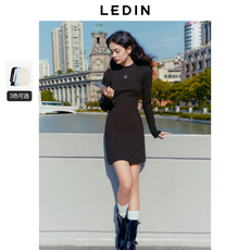 乐町半高领针织连衣裙女装冬季新款木耳边袖口舒适基础修身打底裙