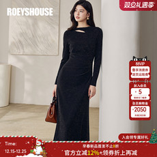 罗衣亮丝长袖连衣裙女内搭黑色显瘦修身打底针织长裙13026