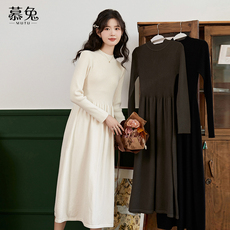 慕兔配大衣长袖针织连衣裙女秋季2025新款高级感内搭毛衣打底长裙