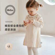 Elk Zoo女童连衣裙春秋款女宝宝针织裙纯棉打底洋气长袖裙子童装