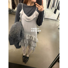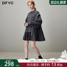 dfvc灰色假两件针织连衣裙女2025年冬季新款拼接百搭打底毛衣裙子