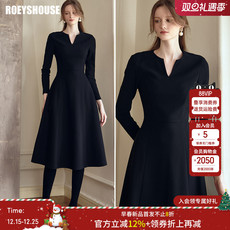 阔色黑色v领内搭打底针织连衣裙女25秋冬季新款长袖毛衣小黑裙子