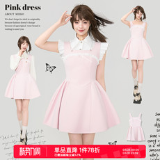 粉色收腰背心吊带裙气质无袖花苞蓬蓬裙修身A字连衣裙裙子女春夏