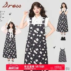 夏季薄款拼接假两件牛仔连衣裙女夏装2025新款气质小个子中长裙子