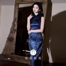 《深海蝶恋》老上海复古高级感蓝色无袖绝美气质港风连衣裙